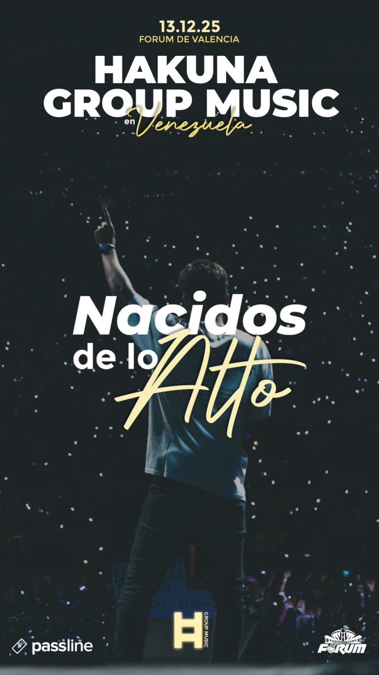 Nacido de lo Alto Concierto Hakuna Group Music Una noche para encender lo invisible. Un canto que nace de lo alto y nos invita a celebrar con sentido, junto a la banda española completa, por primera vez en Latinoamérica.